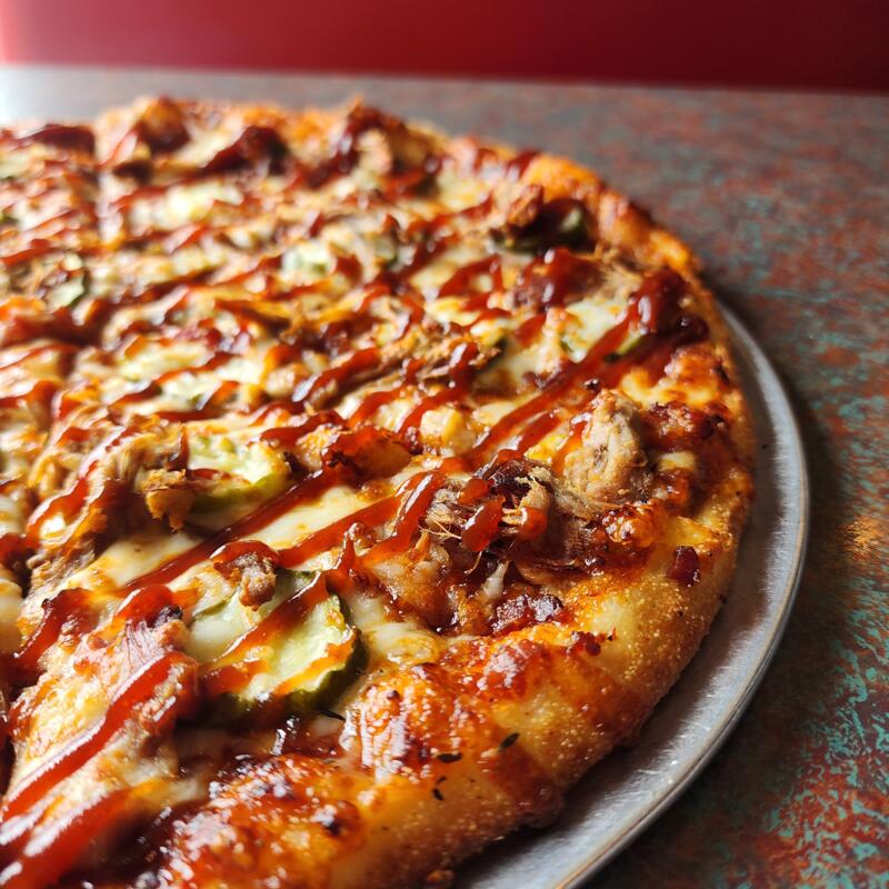 BBQ sauce, grilled chicken, pickled red onions, bacon, bourbon drizzle • 10'' $15.00 | 14'' $21.00 | 18'' $26.00